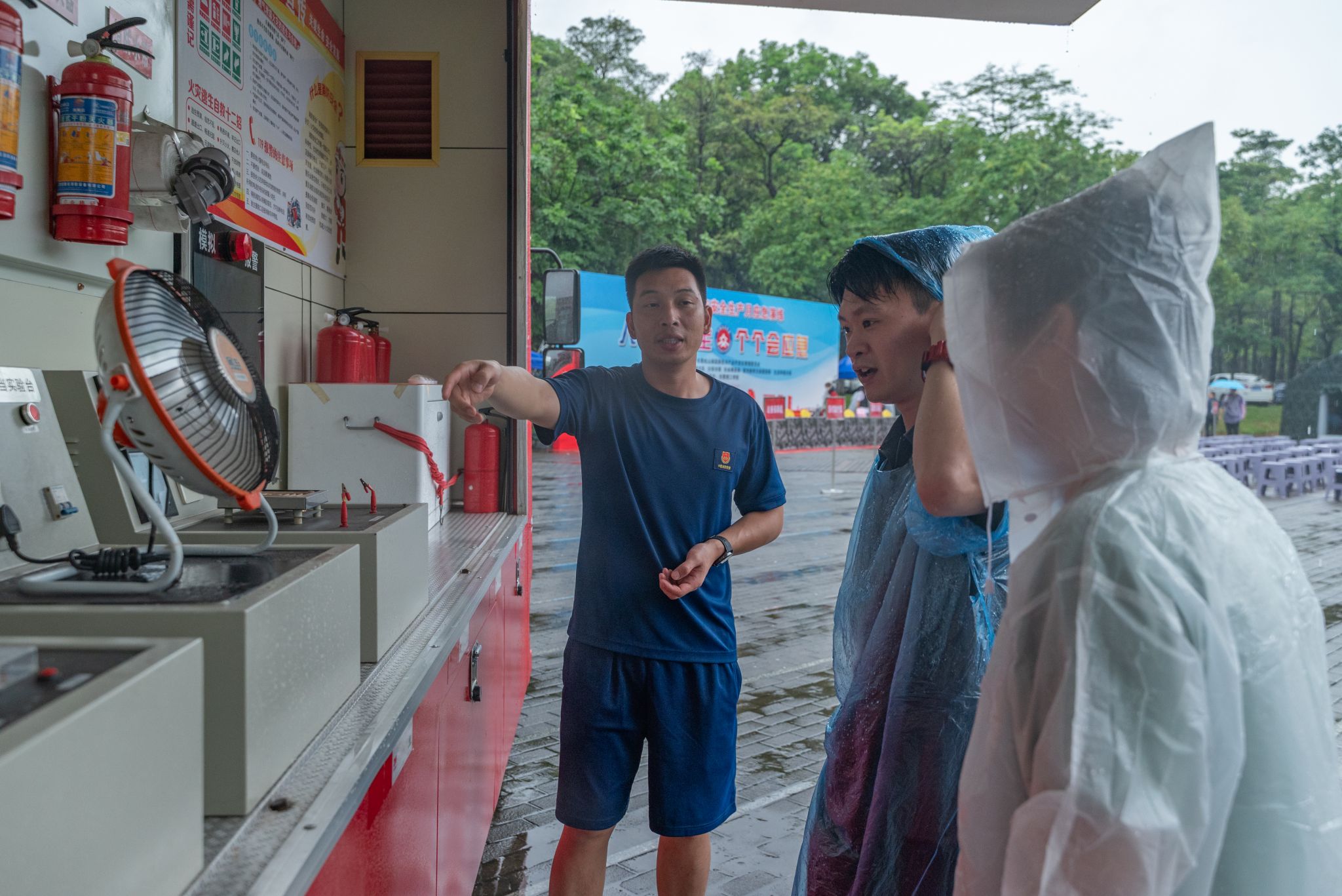 演练结束后,我校志愿消防队队员和消防大队官兵现场演示消防器材的使用,广大师生兴致勃勃地观看了器材的展示,并现场体验灭火器的实操过程。