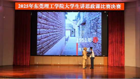 决赛现场,10支学生团队围绕党的理论、改革开放、乡村振兴、红色文化等主题,将专业知识与实践感悟相结合,青春化的表达让思政理论跳出书本,焕发蓬勃生机。《穿越风暴:东莞经济失速与突围之路》以东莞应对贸易战的创新实践为例,展现了中国经济韧性与新发展格局的构建;《虎门销烟:划破近代阴霾的觉醒之光》通过历史与现实的对话,号召青年传承斗争精神;《红色热土迸发力量,东纵精神薪火相传》则通过大学生党员的实践感悟,诠释了红色基因的时代价值。《解码“山泉密码”,书写青春答卷——从伯公山泉看乡村振兴的广东实践》以乡村振兴典型案例,呼吁青年投身“百千万工程”;《从驻港精神到新时代青年担当》通过退伍大学生梁敖的成长故事,彰显了当代青年的家国情怀;情景剧《烽火家书》则以抗美援朝兄弟的感人故事,传递了志愿军战士的坚定信念。