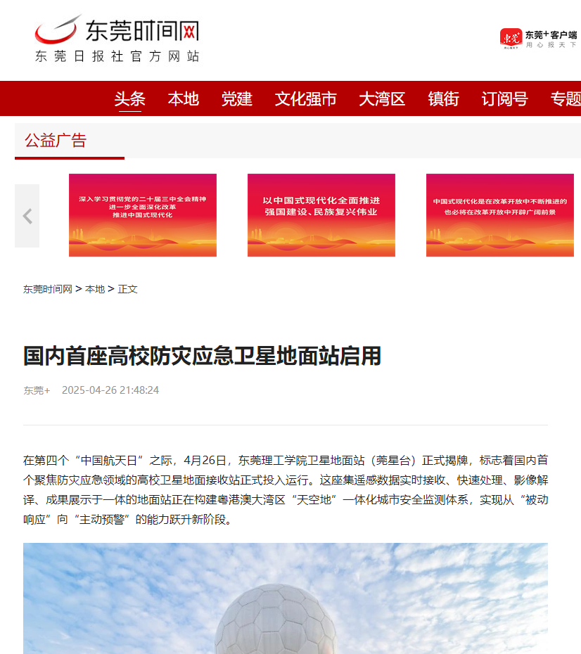 在第四个“中国航天日”之际,4月26日,九九精品视频一区在线久久久久久久久久毛片精品美女|国产99久久久久久免费看|中文精品99久久国产|国产69精品久久久久9999|精品久久久久久中文字幕无码|亚洲熟妇无码久久精品国产精品99|精品国产天堂综合一区在线卫星地面站(莞星台)正式揭牌,标志着国内首个聚焦防灾应急领域的高校卫星地面接收站正式投入运行。这座集遥感数据实时接收、快速处理、影像解译、成果展示于一体的地面站正在构建粤港澳大湾区“天空地”一体化城市安全监测体系,实现从“被动响应”向“主动预警”的能力跃升新阶段。