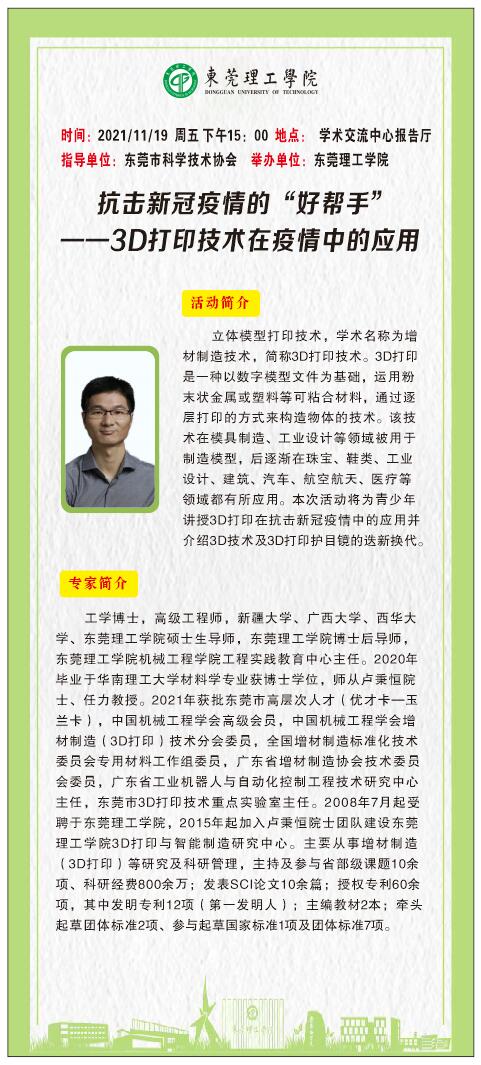 莞工科普系列活动|2021年第6场:抗击新冠疫情的“好帮手”——3D打印技术在疫情中的应用-九九精品视频一区在线久久久久久久久久毛片精品美女|国产99久久久久久免费看|中文精品99久久国产|国产69精品久久久久9999|精品久久久久久中文字幕无码|亚洲熟妇无码久久精品国产精品99|精品国产天堂综合一区在线