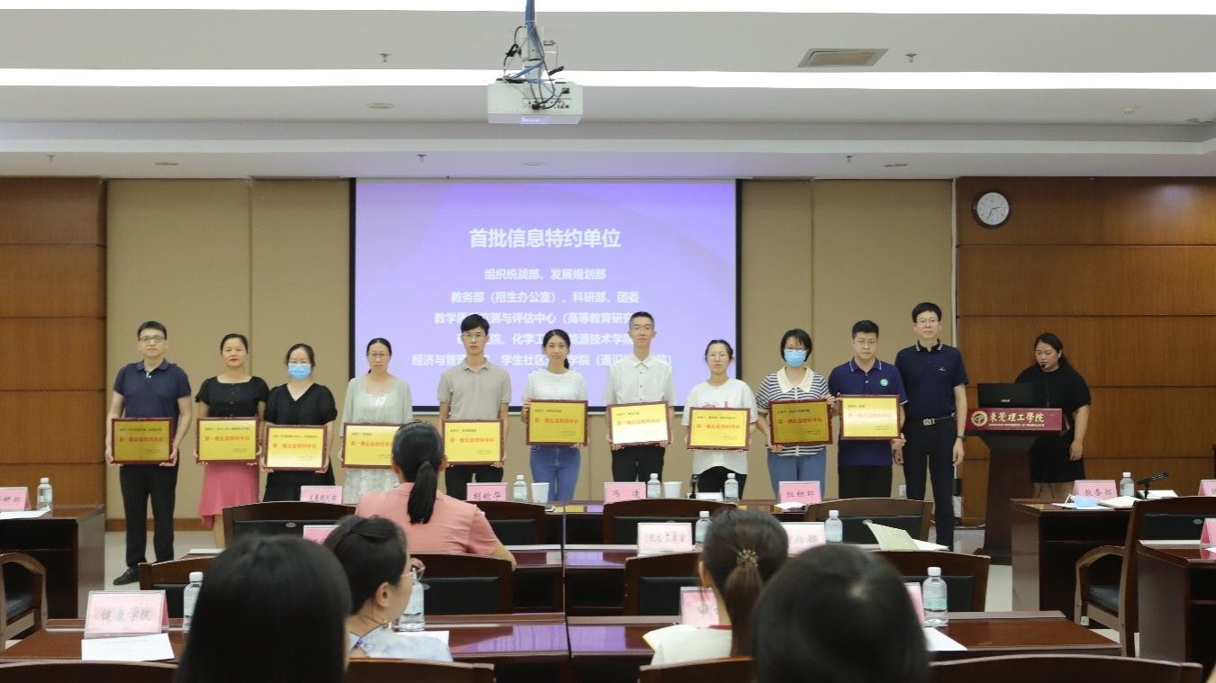 会上还对组织统战部、发展规划部、教务部(招生办公室)、科研部、团委、教学质量监测与评估中心(高等教育研究所)、研究生院、化学工程与能源技术学院、经济与管理学院、学生社区知行学院(通识教育学院)等学校首批10个信息特约单位进行了授牌。