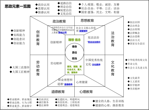 李梁基于其梳理的思政元素一览图,首先谈到了教育逻辑,即课程思政的总体教学设计,包括深化四史(党史、新中国史、改革开放史、社会主义发展史)教育,坚定学生理想信念,以爱党、爱国、爱社会主义、爱人民、爱集体作为主线,以政治认同、家国情怀、文化素养、宪法法治意识、道德修养等作为重点内容。