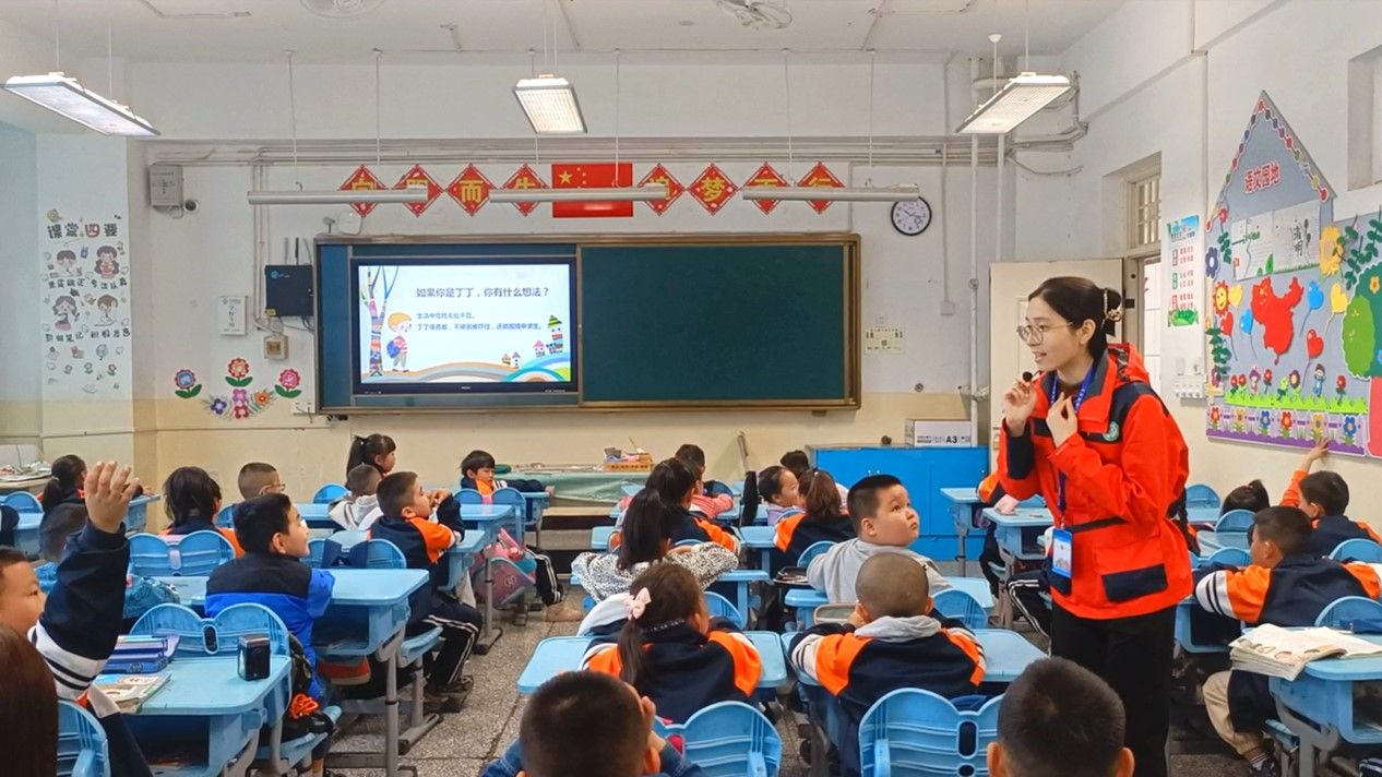 第四批大学生援疆实习支教队队员刘一萍在第三师五十三团中学任教心理健康教育、国学吟诵及写字课,她以兴趣为导向,创新教学方法,深受学生喜爱。在心理健康课上,她通过场景演绎《自我保护》,引导学生学会在危险中保护自己,并勇于求助,有效提升了学生的自我保护意识。同时,她通过开展国学经典篇目吟诵活动,让学生在诵读中感受传统文化的魅力,培养良好的品德情操。