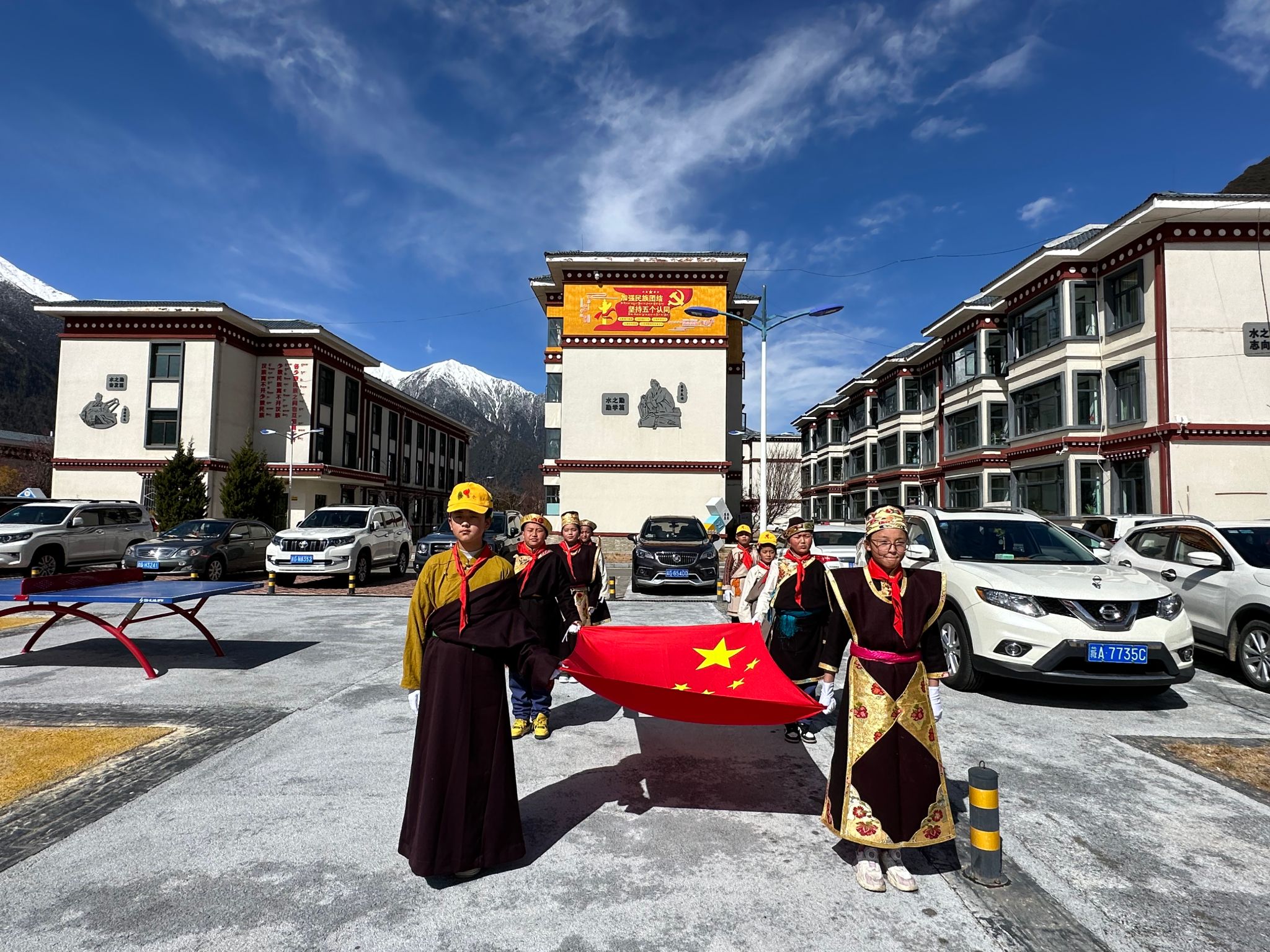 支教队员陈润鹏,他作为第七批大学生援藏(林芝)支教志愿服务队队长也是一名退伍军人,不仅是团队的领航者,更是民族团结的践行者。他带领支教队员开展“加强民族团结、共建美丽西藏”主题宣讲活动,通过生动的故事和切身的体验,让师生深刻感受到民族团结的力量,为构建和谐校园播撒下希望的种子。同时,他在西藏林芝百巴镇小学成立了第一支国旗护卫队,成为校园内一道亮丽的风景线,彰显了学生们对祖国的深情厚谊和民族团结的坚定信念。