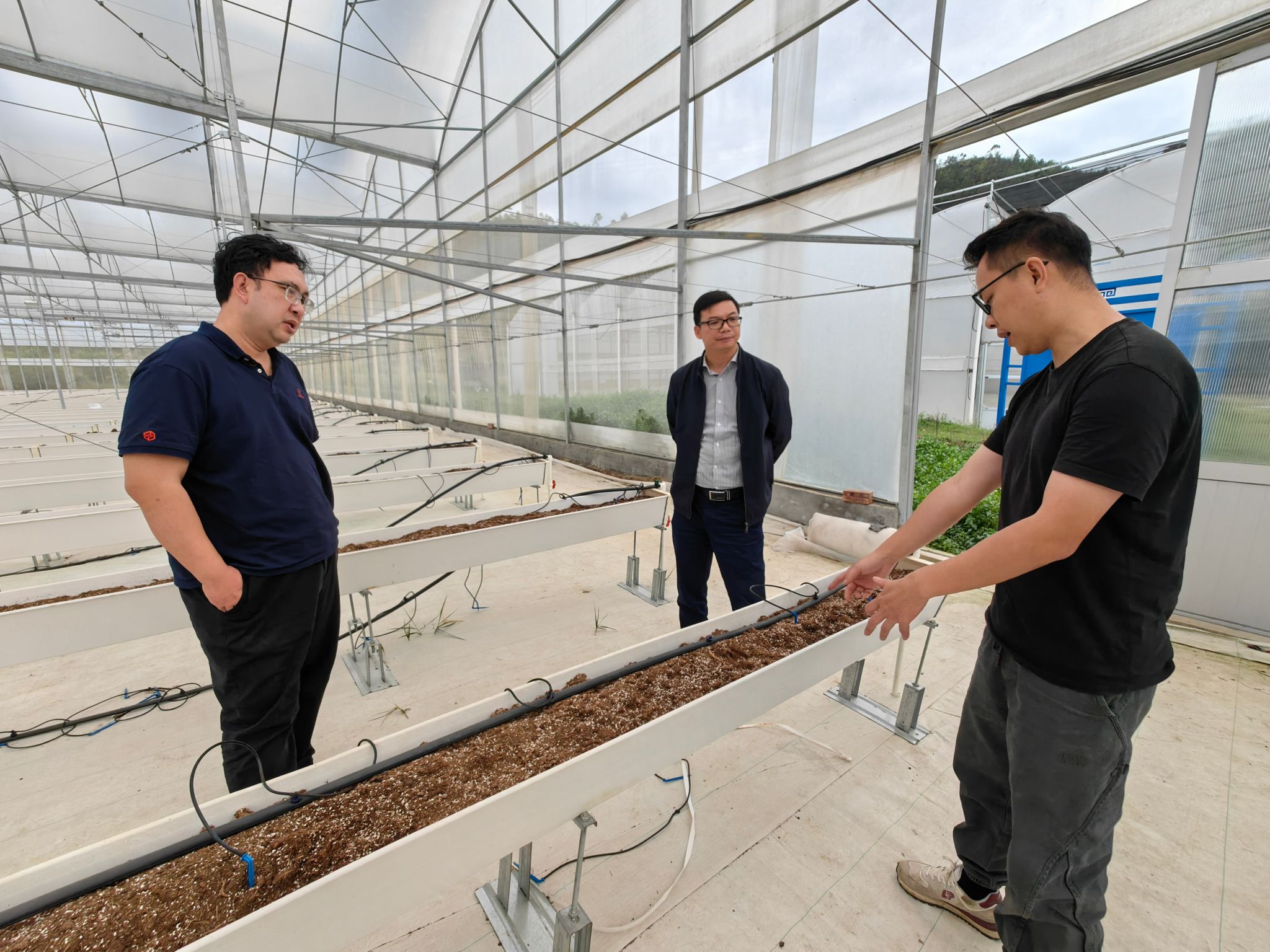 在新丰县蔬东坡农业开发有限公司,郭建文一行详细了解生态农场智慧管理运维情况,参观了新丰县蔬菜省级现代农业产业园农业设施项目,并就智慧农业机械设备科技服务智慧农场工作进行了深入交流。