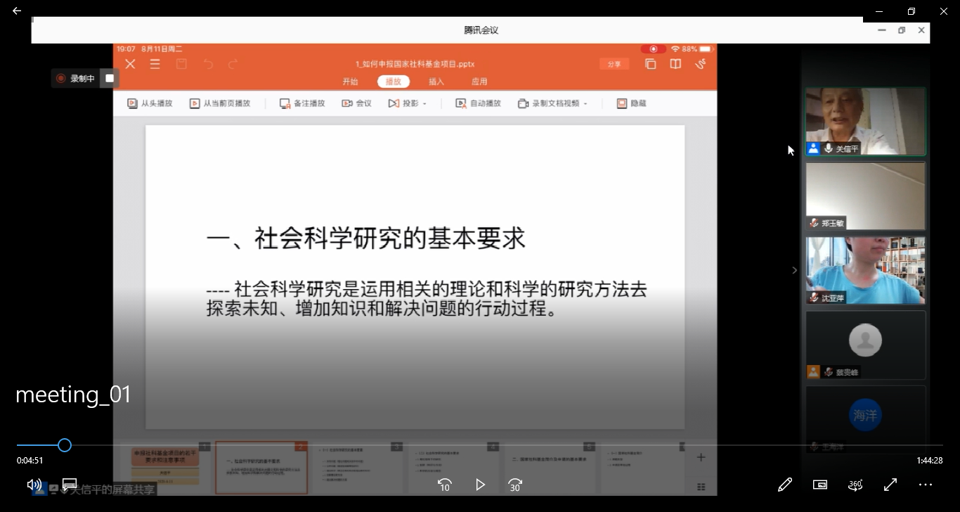关信平教授的讲座知识点满满,与会老师也收获颇多。在之后的问答环节,关教授与老师们在线上进行一对一辅导。此前老师们的申报书初稿已经发给关教授审阅,关教授针对每个人申报书上的问题进行一一指导,也对老师们提出的问题一一解答。