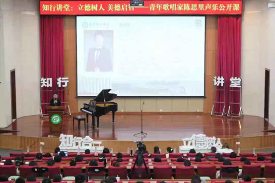12月17日,教育学院(师范学院)音乐系与学生社区知行学院联合举办的知行讲堂“立德树人,美育启智”青年歌唱家陈思里声乐公开课,在学术会议中心报告厅举行。本次公开课由青年歌唱家陈思里主讲。