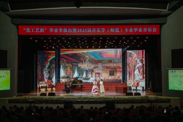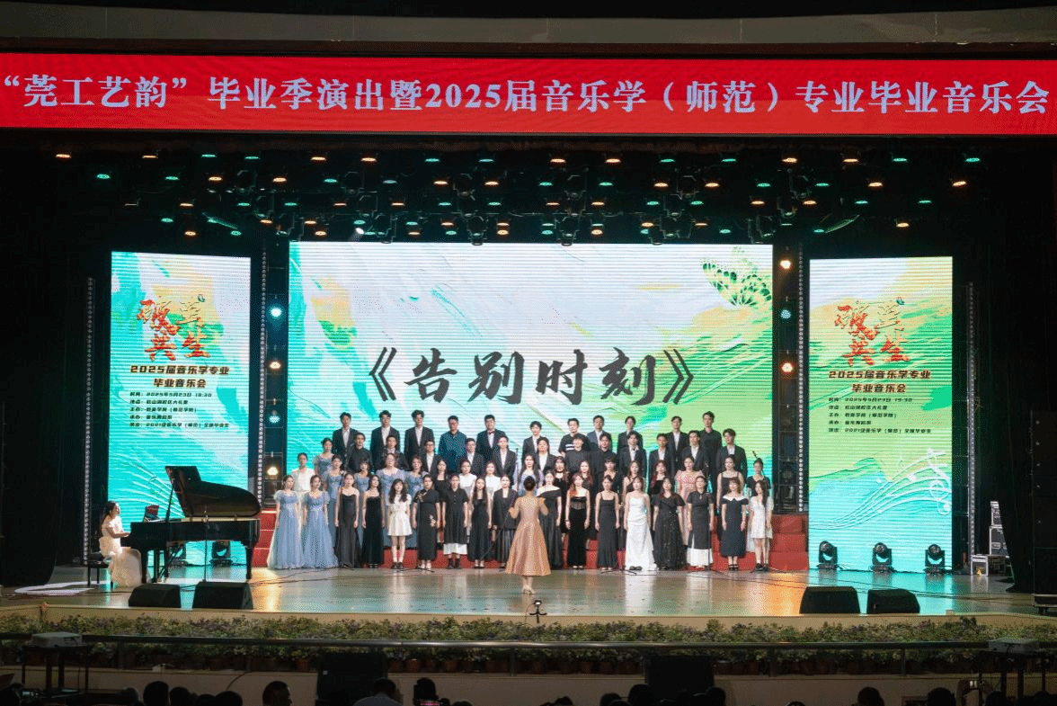 5月23日晚,学校大礼堂内流光溢彩,“破茧•共生”2025届音乐学(师范)专业毕业音乐会在此举行。本场音乐会作为“莞工艺韵”毕业季的收官演出。同学们以音乐为媒,奏响了青春破茧的勇气与对未来的期许。
