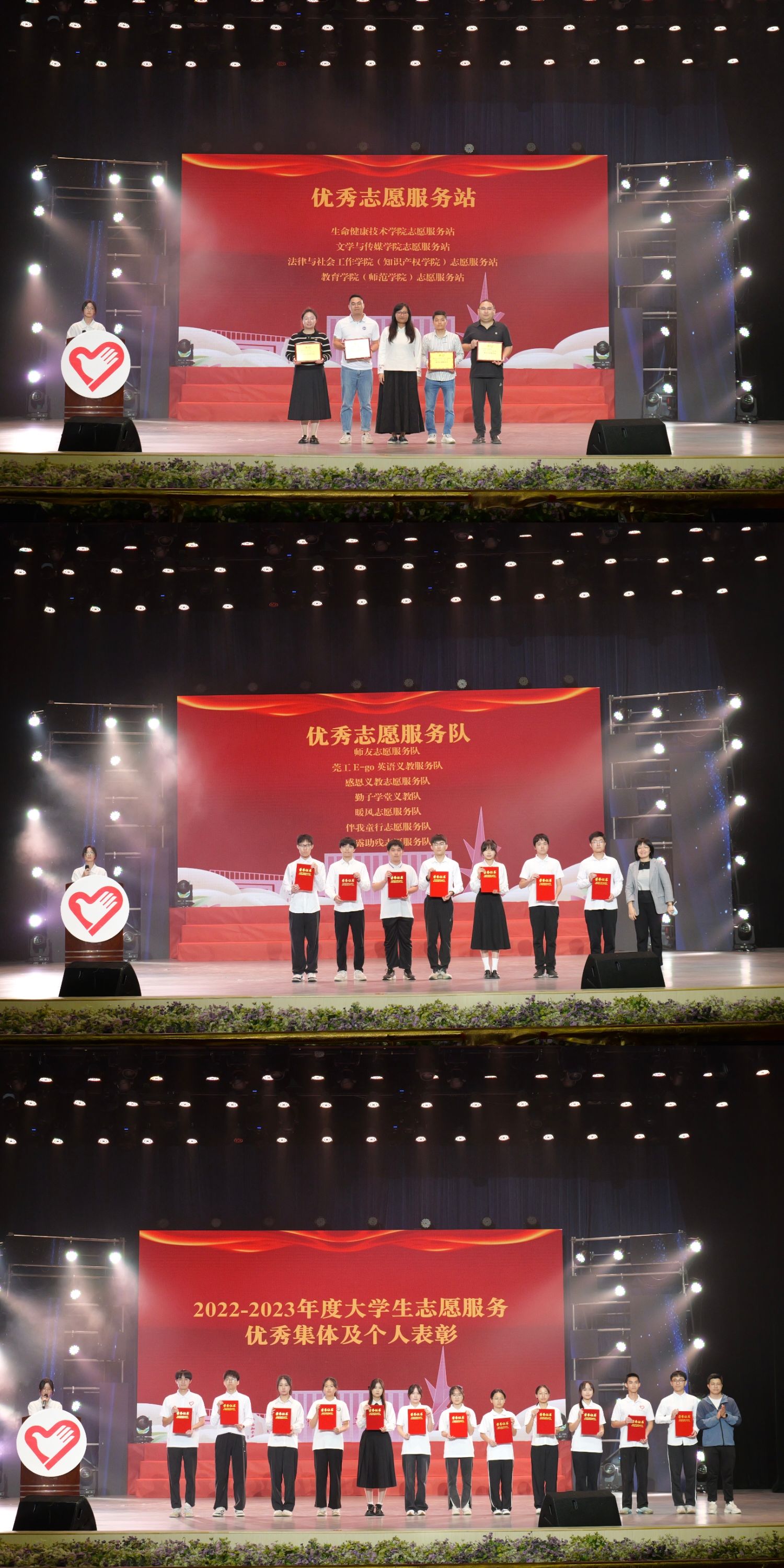 与会人员观看了2022-2023学年度志愿服务工作回顾视频,展现了一年来我校志愿服务的风采。随后,大会为被评为优秀集体及个人的获奖代表颁发荣誉证书及牌匾。